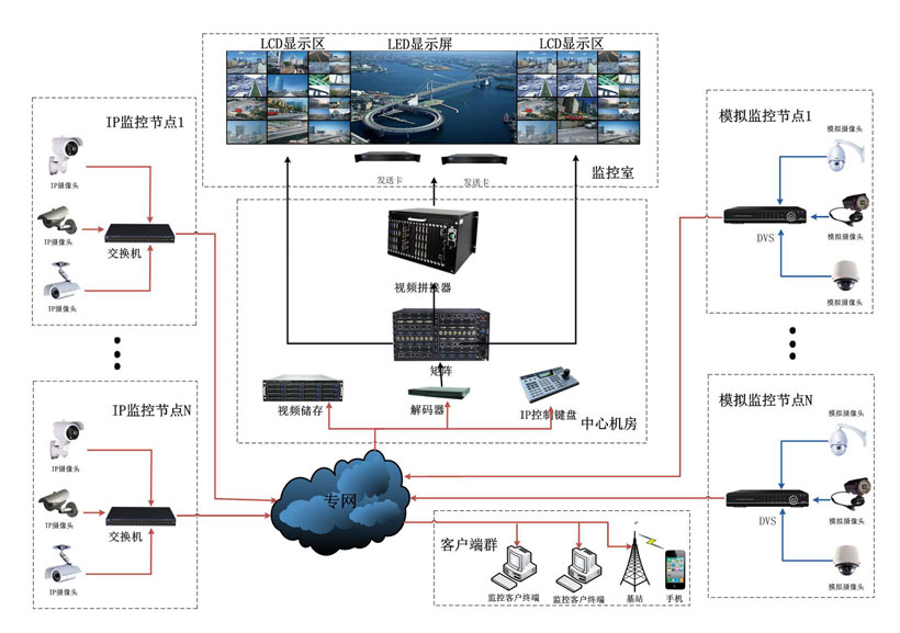 中小型安防監(jiān)控中心,接入安防信號的數(shù)量眾多,同時上屏信號數(shù)量也較多,在顯示屏面積受限條件下,分辨率不足,尤其是在數(shù)字高清信號源的襯托下,一般采用LED+LCD的混搭模式,滿足客戶多信號上屏的條件下, LCD顯示墻可隨時對各種現(xiàn)場信號和各類計算機圖文信號進(jìn)行多畫面顯示,LED大屏幕可以響應(yīng)安防客戶在調(diào)用研判信號做放大特寫和分析,及時做出判斷和處理,發(fā)布指揮命令,實現(xiàn)實時監(jiān)控和集中指揮調(diào)度目的。 4、預(yù)案管理:實現(xiàn)場景預(yù)案管理,可以設(shè)定、存儲和管理場景及預(yù)案;可方便實現(xiàn)場景及預(yù)案編制、保存、修改、刪除,可以實現(xiàn)所有顯示畫面預(yù)先編排(對顯示信號的窗口大小、位置進(jìn)行設(shè)置設(shè)定模板,并可隨時調(diào)用已存的顯示預(yù)案),支持使用“熱鍵”(快捷鍵)快速調(diào)用預(yù)案。支持預(yù)案自動執(zhí)行功能,可根據(jù)時間或事件觸發(fā),實現(xiàn)畫面自動顯示。